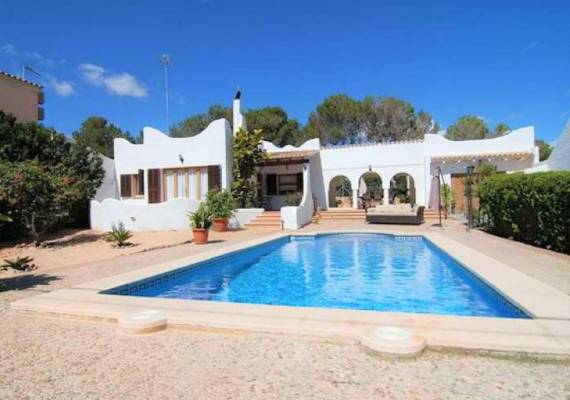 La propiedad CASA GARONDA de estilo ibicenco está situada en la zona residencial de Cala Pi, y cuanta con piscina privada sin cloro (8x4x0,6/1,8m), barbacoa y muebles de exterior para comer al aire libre. Prácticamente goza de sol todo el día, con zona para tomar el sol con tumbonas, sofás y sillas. Hay varias terrazas, porche amueblado y jardín muy tranquilo.